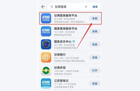 3.使用软件商店搜索“甘肃医保服务平台”,点击安装