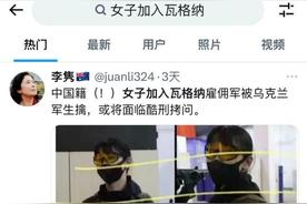 近日外网疯传,一中国籍女子加入俄罗斯私人军事公司“瓦格纳”,在俄乌战争中被乌军生擒,这则消息引发众多网友关注。